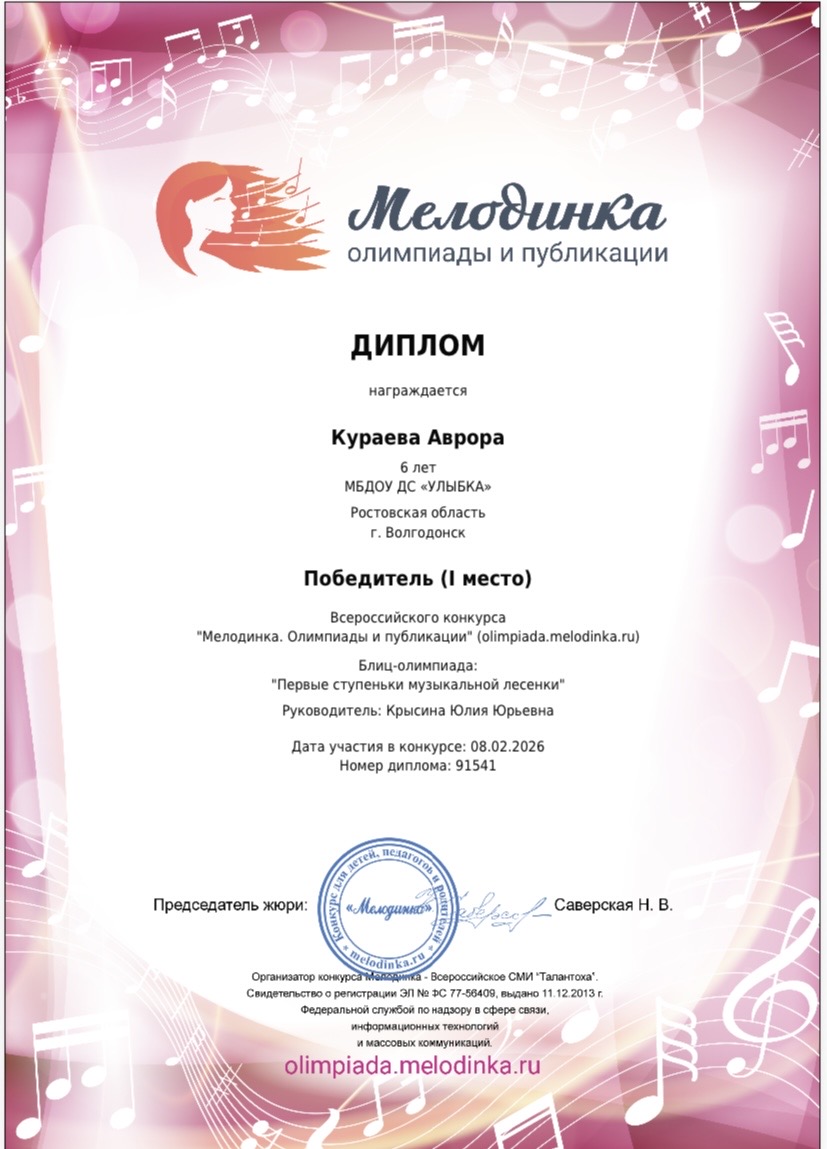 всероссийский конкурс "Мелодинка". Олимпиады и публикации". Блиц-олимпиада: "ПЕРВЫЕ СТУПЕНЬКИ МУЗЫКАЛЬНОЙ ЛЕСЕНКИ"