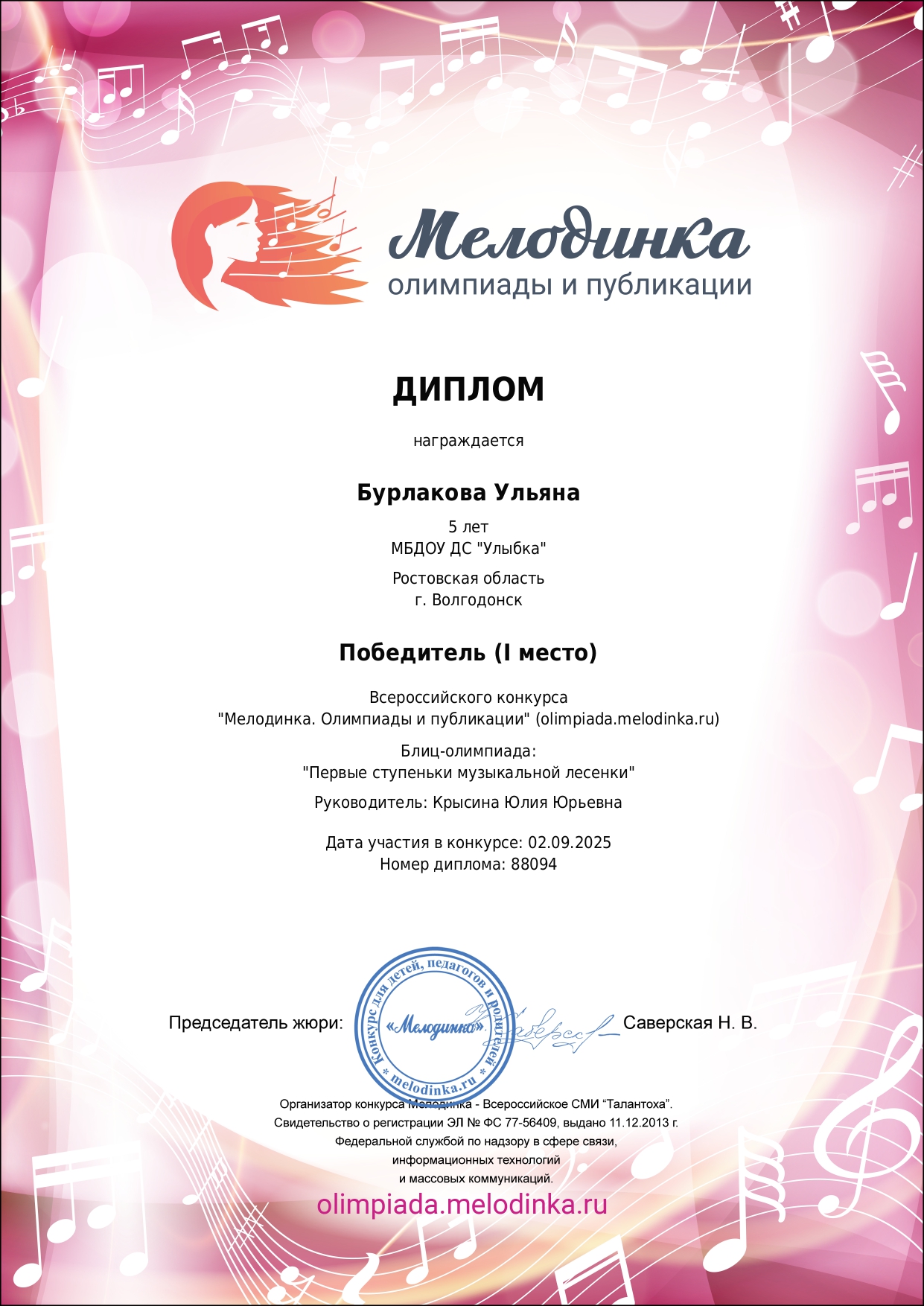 Всероссийский конкурс "Мелодинка".Олимпиады и публикации". "Блиц-олимпиада: "ПЕРВЫЕ СТУПЕНЬКИ МУЗЫКАЛЬНОЙ ЛЕСЕНКИ"