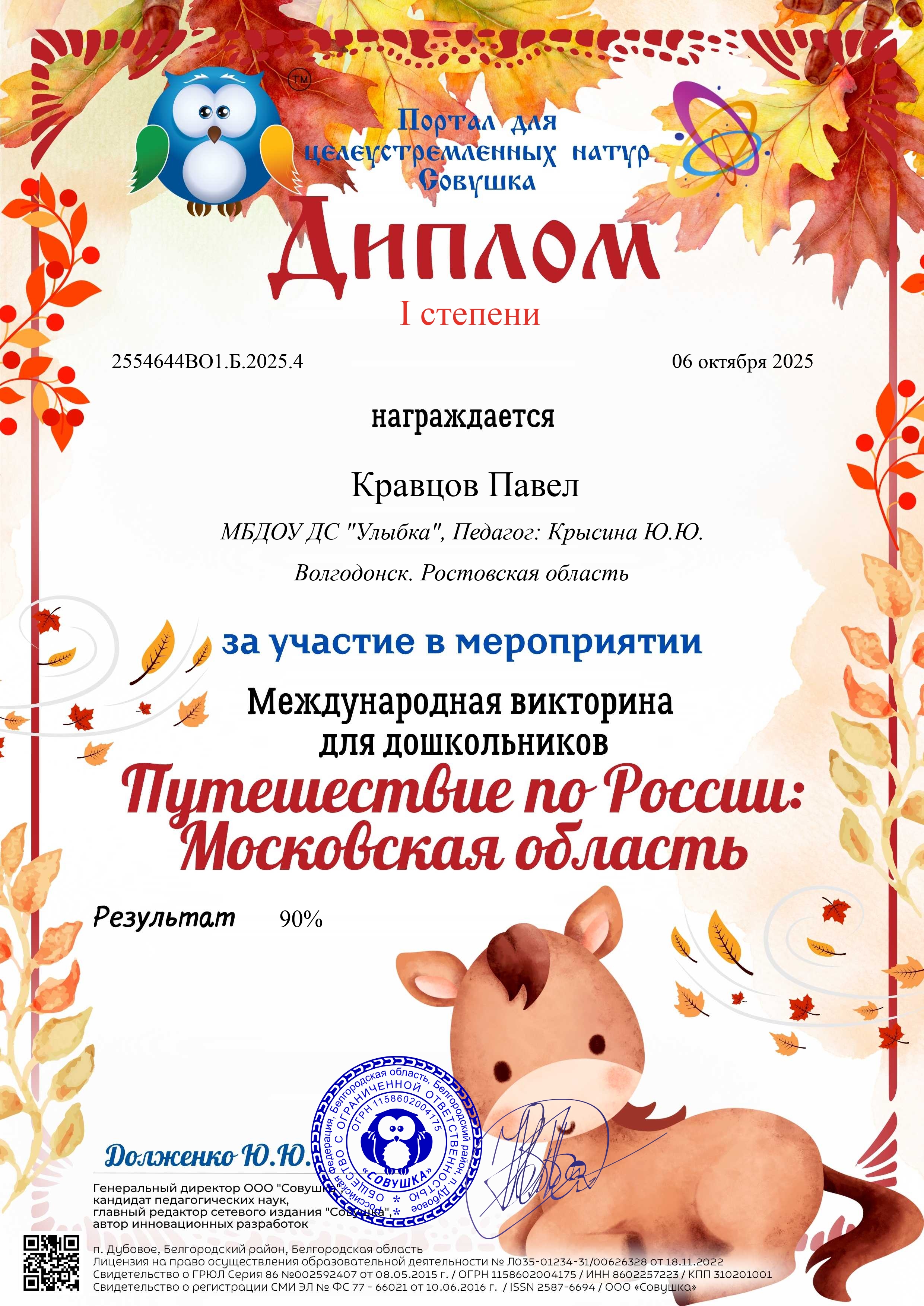 Международная викторина для дошкольников:" Путешествие по России Московской область"