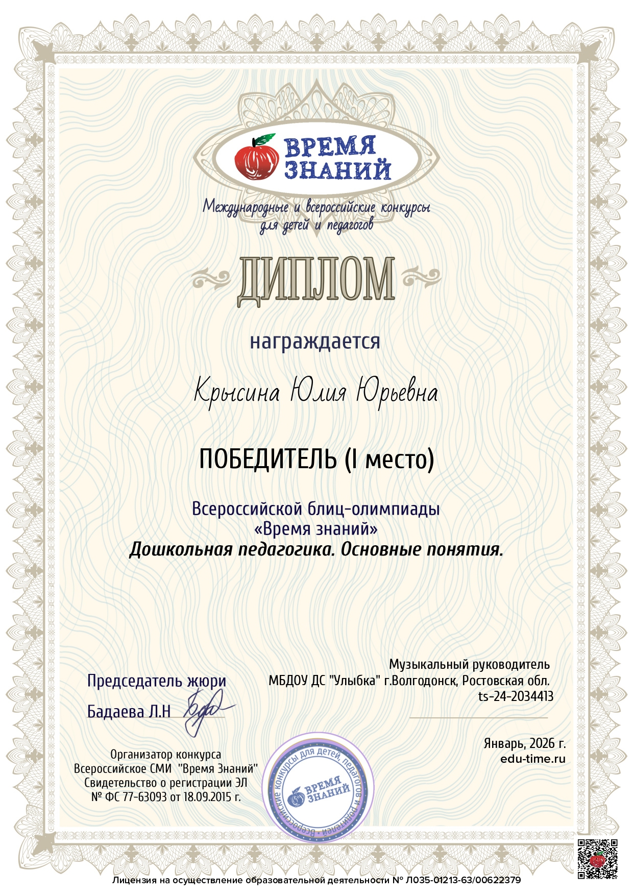 Крысина Юлия Юрьевна